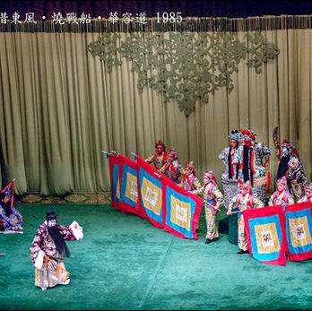 瑜又與吳將黄蓋定苦肉之計,使蓋假意降曹。蓋遣闞澤先至曹營下詐降書。操疑,遣蔣幹再過吳寨,探聽虛實。幹被周瑜困禁而得遇龐統。幹乘機說龐統投曹。龐統見操獻連環船之計。計成,瑜與亮皆同意破曹宜用火攻,但苦無東風以助火勢。亮測氣象助之。東風果起,瑜大驚,即差人殺亮;亮已由趙雲接應返囘夏口,命趙雲、張飛襲曹營。操率少數殘兵敗走,至華容道,為關羽所阻。操以春秋之義動之。羽不失當年之信義,遂釋操一眾,自願回營請罪。